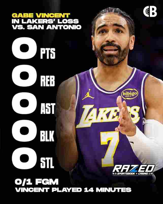 毫无存在感!文森特今日打14分钟1中0 分板助断帽均为0&犯规3次